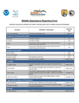 Seabird Protection Network Updated: December 30, 2013 . Wildlife Disturbance Reporting Form