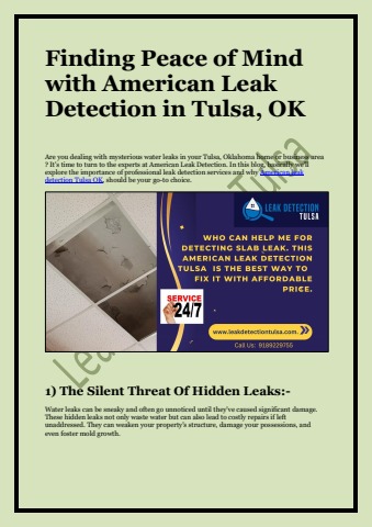 Are you dealing with mysterious water leaks in your Tulsa, Oklahoma home or business area ? It's time to turn to the experts at American Leak Detection. In this blog, basically we'll explore the importance of professional leak detection services and why American leak detection Tulsa OK, should be your go-to choice.