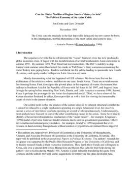 Can the Global Neoliberal Regime Survive Victory in Asia? The Political Economy of the Asian Crisis Jim Crotty and Gary Dymski∗ November 1998