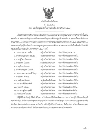 คำสั่งแต่งตั้งครูประจำชั้น ภาคเรียนที่ 2 ป