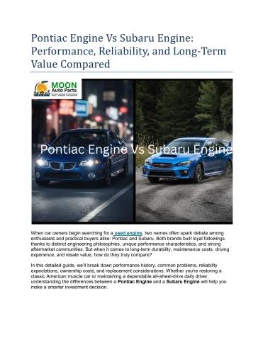 Pontiac Engine Vs Subaru Engine: Performance, Reliability, and Long-Term Value Compared