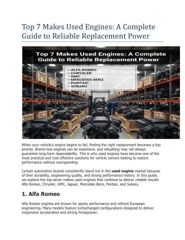 Top 7 Makes Used Engines: A Complete Guide to Reliable Replacement Power