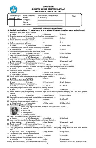 Soal SAS Genap Kelas 4 - Seni Budaya