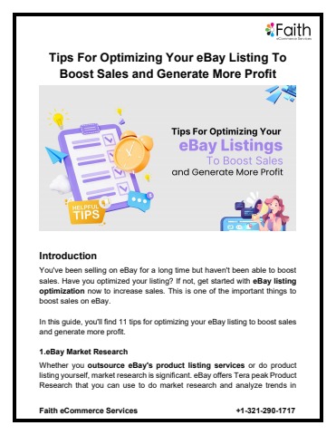 eBay listing optimization is now one of the important things to boost sales on eBay. eBay listing optimization is a continuous activity that helps you improve sales. Strive to improve customer shopping experience to get a high ranking on eBay and get more profit. Read more: https://ecommerceservicesindia.wordpress.com/2023/10/10/tips-for-optimizing-your-ebay-listing-to-boost-sales-and-generate-more-profit/