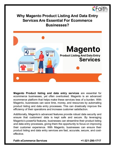 With Magento, businesses can save time, money, and resources by automating product listing and data entry processes. This can drastically improve the efficiency of their operations and increase customer satisfaction. Magento’s advanced features provide robust data security and ensure that customers’ data is kept safe and secure. Read more: https://ecommerceservicesindia.wordpress.com/2023/09/01/why-magento-product-listing-and-data-entry-services-are-essential-for-ecommerce-businesses/