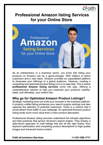 Professional services can be the catalyst that unleashes your product’s true potential whether you are an online reseller or new to the market. Make sure to avail of services from renowned service providers like Faith eCommerce. Read more: https://locantotech.com/professional-amazon-listing-services-for-your-online-store/