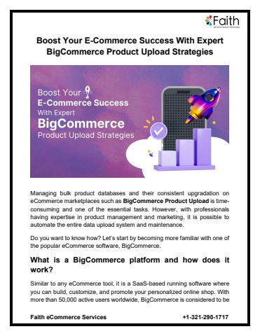 BigCommerce is one of the popular and widely accepted SaaS-based platforms comprising various tools and features that contributed to its effective online store management and promotions. Though it is easy to understand how to upload products using in-built CSV sheets, managing and updating a pile of product databases consistently is a challenging and essential task in terms of eCommerce business. Read more: https://ecommerceservicesindia.wordpress.com/2023/11/01/boost-your-e-commerce-success-with-expert-bigcommerce-product-upload-strategies/