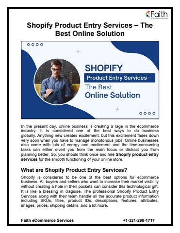 Get a hold of the benefits of outsourcing Shopify Product Entry Services. Save your precious time and just focus on business growth. You will surely have a hassle-free experience on this journey. Without much delay, search for the most renowned Shopify product entry services and boost your online presence. Read more: https://fecoms.com/shopify-product-listing/