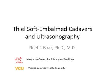 Thiel Soft-Embalmed Cadavers and Ultrasonography Noel T. Boaz, Ph.D., M.D. Integrative Centers for Science and Medicine Virginia Commonwealth University