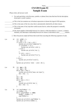 booBoo = booBoo + 2; yogiTheBear++; } System.out.println( yogiTheBear ); System.out.println( booBoo ); 2 pts e) for (int z=1; z!=3; z++) { System.out.println(z); }