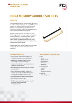 DDR4 MEMORY MODULE SOCKETS OVERVIEW Vertical DDR4 DIMM sockets from FCI provide 288 contacts on 0.85mm pitch and are designed to accept DDR4 memory
