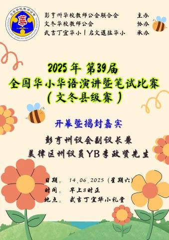 2025年第39届全国华小华语演讲暨笔试赛(文冬县级赛)