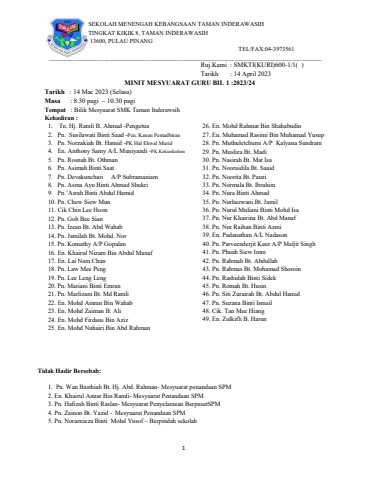 MINIT MESYUARAT GURU BIL.1 2023 SERTA MAKLUMBALAS