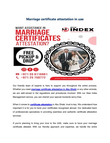 Our team specializes in providing top-notch attestation services, whether you're in Abu Dhabi or any other part of the country. We understand the importance of your marriage certificate and ensure its proper authentication, making it valid and acceptable by authorities. Enjoy a friendly and efficient service that will leave you stress-free. Contact us today and let us assist you with your Marriage Certificate attestation in Abu Dhabi!