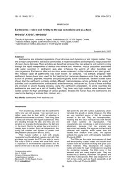 This review partially comprises the published information about versatile use of the earthworms. Earthworms in soil fertility The role of EWs in soil fertility is ...