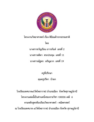โครงงานเรื่องย้อมผ้าจากธรรมชาติ