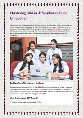 Explore the dynamic intersection of business and technology with Symbiosis BBA IT program in Pune. Navigate the evolving IT landscape, gain strategic insights, and propel your career forward.