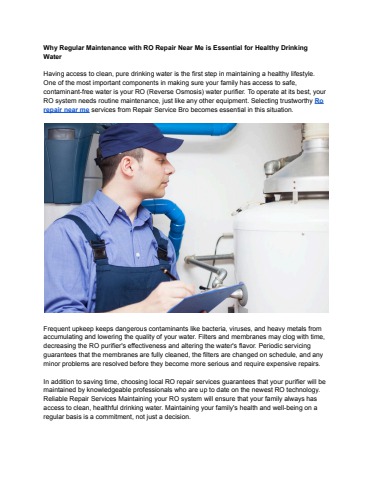 Why Regular Maintenance with RO Repair Near Me is Essential for Healthy Drinking Water
