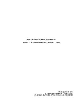 1. INTRODUCTION This report focuses on a study of revolving door usage on the Massachusetts Institute of Technology campus, which our group completed for the MIT ...