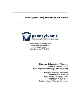 Pennsylvania Department of Education Commonwealth of Pennsylvania Department of Education 333 Market Street Harrisburg, PA 17126-0333 Special Education Report