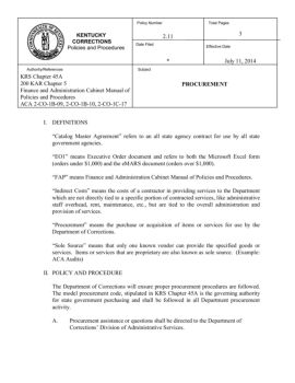 2.KENTUCKY CORRECTIONS Policies and Procedures Policy Number 11 Date Filed Total Pages 3 Effective Date * July 11, 2014 Authority/References KRS Chapter 45A