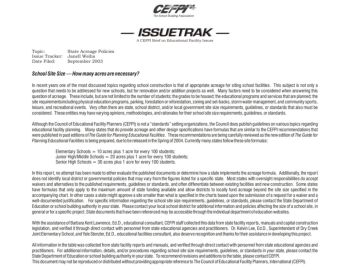 —— IISSSSUUEETTRRAAKK —— School Site Size — How many acres are necessar y? In recent years one of the most discussed topics regarding school construction is ...