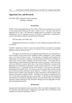APPRAISAL, PAY AND REWARDS 119 Performance appraisal in the APS aims to “link individual performance to corporate goals, improve communication between senior ...