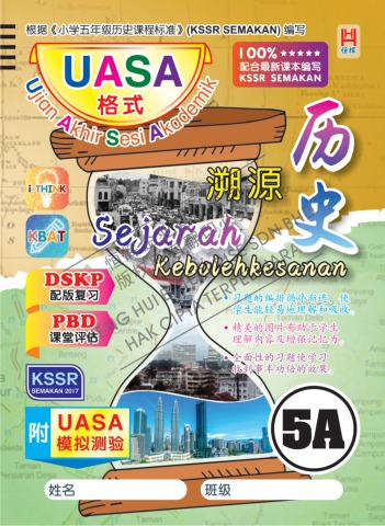 - 根据《小学五年级历史课程标准》(KSSR SEMAKAN) 编写<br>- 以 UASA 模拟测验格式编排<br>- DSKP 配版复习<br>- PBD 课堂评估<br>- 附 UASA 模拟测验<br>- 习题的编排循序渐进,使学生能轻易地理解和吸收<br>- 精美的图片有助于学生理解内容及增强记忆力<br>- 全面性的习题使学习收到事半功倍的效果<br>- 内容充实,多样化的习题能提高学生的学习兴趣<br>- 备有答案供参考
