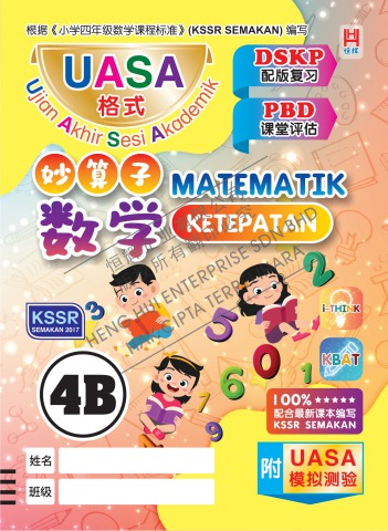 - 根据《小学四年级数学课程标准》(KSSR SEMAKAN) 编写<br>- 以 UASA 模拟测验格式编排<br>- DSKP 配版复习<br>- PBD 课堂评估<br>- 附 UASA 模拟测验<br>- 100%符合最新课程标准。<br>-由资深的数学老师编写。<br>-习题配合学生的日常生活经验,且极具启发性和挑战性。<br>-适合作为辅导、巩固或自习之用。