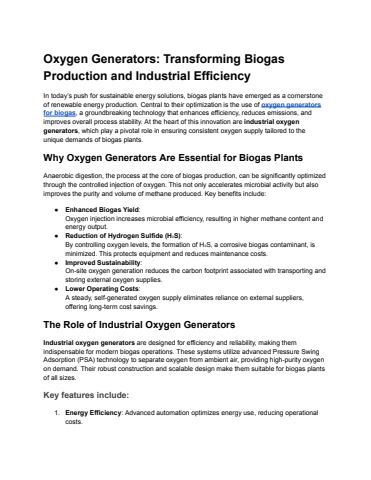Oxygen Generators_ Transforming Biogas Production and Industrial Efficiency