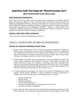 Justice for Victims of Trafficking Act Section-by-Section Analysis . Major Supporting Organizations . More than 200 victims’ rights and law enforcement ...