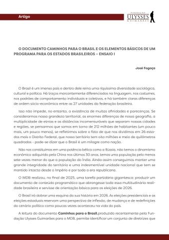 No novo artigo publicado no site da Fundação Ulysses Guimarães (FUG), o ex-senador José Fogaça analisa como o documento Caminhos para o Brasil pode orientar programas de governo nos estados brasileiros.