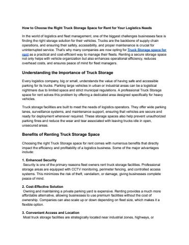 That’s why many companies are now opting for Truck Storage space for rent as a practical and cost-efficient way to manage their fleets.