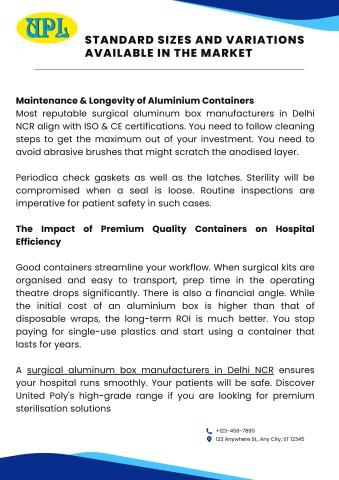 Most reputable surgical aluminum box manufacturers in Delhi NCR align with ISO & CE certifications. You need to follow cleaning steps to get the maximum out of your investment. You need to avoid abrasive brushes that might scratch the anodised layer.