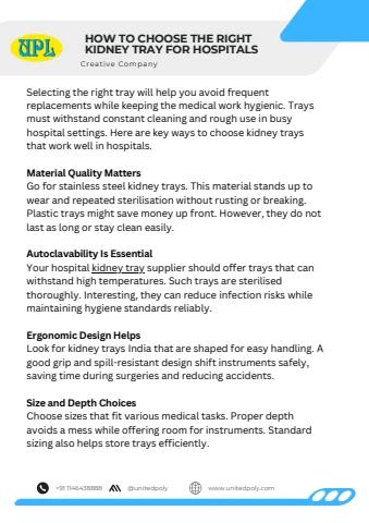 Selecting the right tray will help you avoid frequent replacements while keeping the medical work hygienic. Trays must withstand constant cleaning and rough use in busy hospital settings. Here are key ways to choose kidney trays that work well in hospitals.