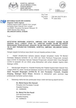 KETETAPAN BERSAMA HOSPITAL AMPANG & PAID HULU LANGAT BERHUBUNG PENGURUSAN JENAZAH ISLAM COVID-19
