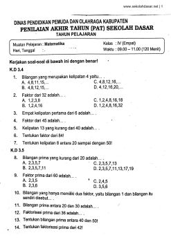 SOAL ULANGAN MATEMATIKA KELAS 4 SEMESTER 2