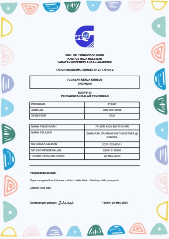 ZUHAIRAH ZAHIRAH BINTI MOSTAFA@SAMSUL IPG-Pelajar