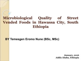 Microbiological Quality of Street Vended Foods in Hawassa City, South Ethiopia BY Temesgen Eromo Nune (BSc, MSc) January, 2016 Addis Ababa, Ethiopia