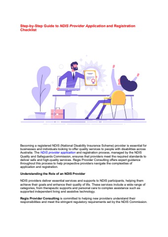 Becoming a registered NDIS (National Disability Insurance Scheme) provider is essential for businesses and individuals looking to offer quality services to people with disabilities across Australia. The NDIS provider application and registration process, managed by the NDIS Quality and Safeguards Commission, ensures that providers meet the required standards to deliver safe and high-quality services. Regis Provider Consulting offers expert guidance throughout this process to help prospective providers navigate the complexities of application and registration.
