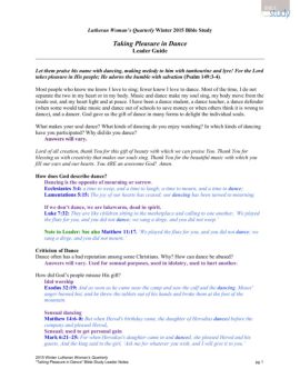2015 Winter Lutheran Woman’s Quarterly “Taking Pleasure in Dance” Bible Study Leader Notes ...