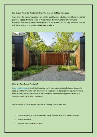 A rain screen products is a building design that incorporates a cavity between its exterior cladding and its structural wall. It is meant to create an additional barrier against moisture while ensuring proper ventilation at the same time. Instead of trying to seal water out, rainscreen walls try to direct it outward. For professional assistance with rainscreen products, turn to Black Locust Lumber and get reliable materials for any construction project.