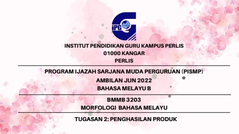 BMMB 3203<br>MORFOLOGI BAHASA MELAYU<br>TUGASAN 2<br>MUHAMMAD AMIR AMIRUL BIN ISHAK<br>2022232440033<br>040708020565