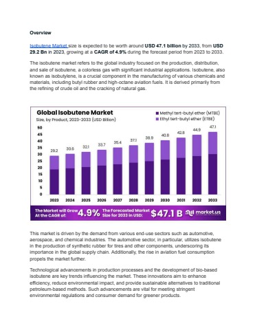 Isobutene Market size is expected to be worth around USD 47.1 billion by 2033, from USD 29.2 Bn in 2023, growing at a CAGR of 4.9%