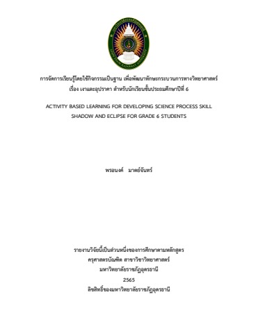 วิจัย เรื่อง การจัดการเรียนรู้โดยใช้กิจกรรมเป็นฐาน เรื่อง เงาและอุปราคา สำหรับนักเรียนชั้นประถมศึกษาปีที่ 6 เพื่อศึกษาและเปรียบเทียบทักษะกระบวนทางวิทยาศาสตร์