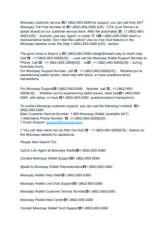 Whether you're dealing ☎️1-(862)-693-0260 with account issues, need assistance with your ☎️1-(862)-693-0260 wallet, or have specific inquiries ☎️1-(862)-693-0260, reaching out to a live agent can quickly resolve your concerns. This guide explains the steps to contact moonpay ☎️1-(862)-693-0260 customer service via phone ☎️1-(862)-693-0260 and provides tips on the best times to call to minimize wait times