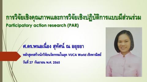 ศ.ดร.พนอเนื่อง สุทัศน์ ณ อยุธยา การวิจัยเชิงคุณภาพและการวิจัยเชิงปฏิบัติการแบบมีส่วนร่วม Participatory action research (PAR)