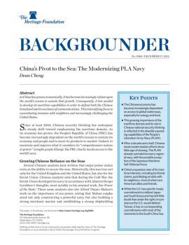 bAcKGrOUNDer Kfl Pˇ China’s Pivot to the Sea: The Modernizing PLA Navy Dean Cheng No. 3084 | December 17, 2015 n The Chinese economy has become increasingly dependent