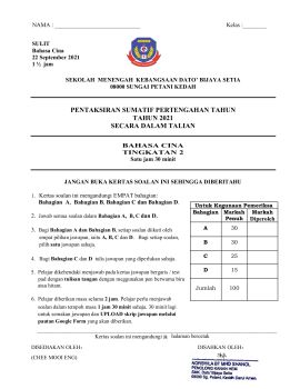 PENTAKSIRAN SUMATIF PERTENGAHAN TAHUN BAHASA CINA T2 2021