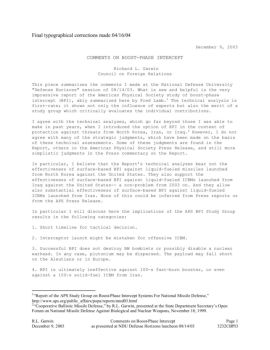 R.L. Garwin Comments on Boost -Phase Intercept Page 1 December 9, 2003 as presented at NDU Defense Horizons luncheon 08/14/03 3232CBPI3